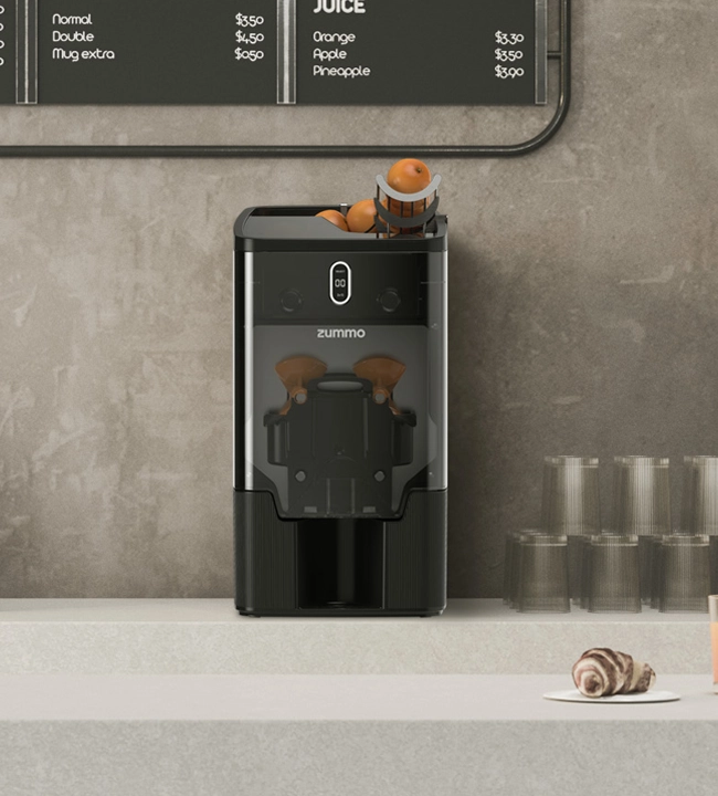 Une technologie intelligente pour obtenir le jus parfait. Le système vertical efficace est un système de pressage vertical unique et exclusif de Zummo.